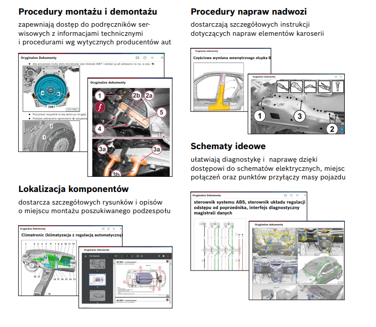 Dostęp do oryginalnych dokumentów, takich jak schematy instalacji elektrycznych, instrukcje napraw czy kody usterek, pozwala na precyzyjną diagnozę i sprawniejsze przeprowadzanie napraw. Teraz tester diagnostyczny to nie tylko narzędzie, ale także bogata baza oryginalnych danych technicznych. Warsztaty korzystające z ESI[tronic] Evolution mogą liczyć na regularne aktualizacje tych dokumentów, dzięki czemu zawsze mają dostęp do najnowszych informacji.