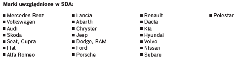 Obecnie SDA obejmuje ponad 20 marek pojazdów, a liczba ta stale rośnie. Wynika to z faktu, że niektóre